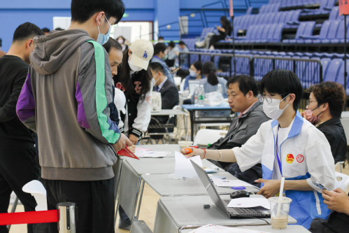 In the gymnasium, in front of the service point formed by the colleges and functional departments, many students and parents are consulting!