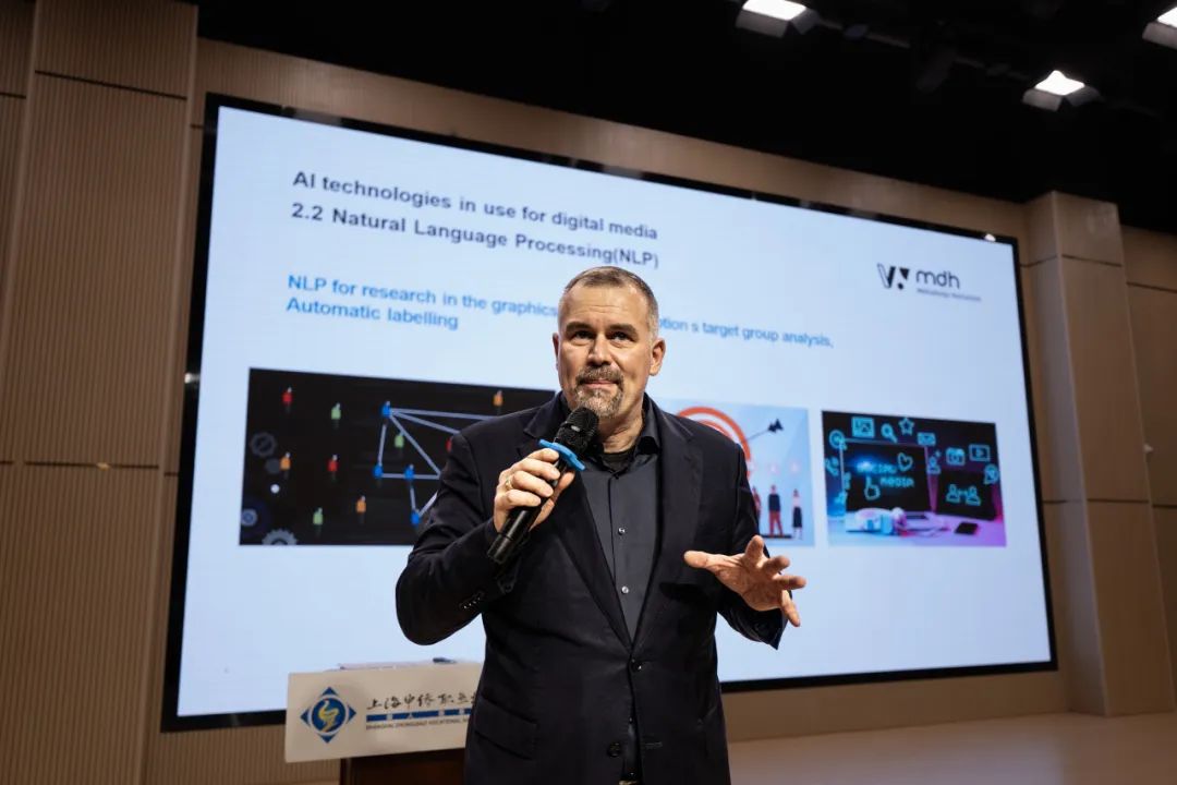 In the morning, President Martin Adam delivered a lecture titled "The Future of Media Design: How Artificial Intelligence is Leading Creative Directions" to our students, which was hosted by Yan Hui. During the lecture, President Adam shared the extensive applications of AI in media design, such as image recognition and natural language processing, and discussed the challenges and issues of AI in design. The students actively participated in the interaction and eagerly asked questions related to media design and artificial intelligence.