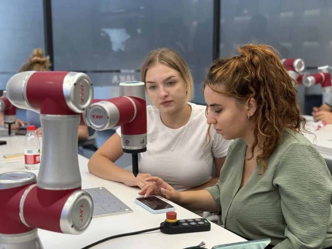 The observation activity took place at JAKA’s headquarters in Shanghai, where the company’s senior management warmly welcomed the delegation. Guided by professional staff, the students and faculty toured the product showroom and R&D center. The students showed great interest in the technical features of JAKA robots and engaged in active discussions with engineers on key technological topics. JAKA’s advanced manufacturing processes, rigorous quality management system, and highly automated production capabilities left a strong impression, giving participants a direct and deeper understanding of the “quality” and “speed” of Chinese intelligent manufacturing.